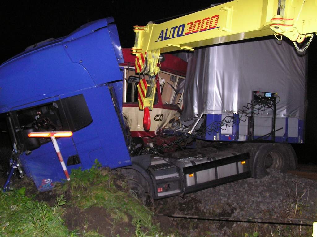 Chodová Planá - Dnes ráno v 5:35 hod. se na železničním přejezdu se závorami v Chodové Plané na Tachovsku střetl R 353 (Frankfurt n. M. - Cheb - Praha) s kamiónem. Kamión vjížděl na přejezd ještě před tím, než byl přejezd v činnosti a zůstal na něm stát patrně kvůli závadě motoru. Vlak narazil do návěsu asi deset metrů od kabiny řidiče. Řidič utrpěl lehčí zranění, strojvedoucímu se nestalo nic. Vlak jel před srážkou rychlostí 30 kilometrů za hodinu. Po nárazu byla lokomotiva řady 363 značně zdemolovaná. Celková škoda se odhaduje přes 1 mil. Kč (škoda na vlaku byla vyčíslena na půl milionu korun, půl milionu korun na kamionu a 200 tisíc korun na zabezpečovacím zařízení. Koleje srážka na místě vůbec neponičila, ale zcela zničené je zabezpečovací zařízení na přejezdu.