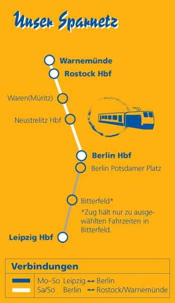 Lipsko - Od 10.6.2007 nabídne společnost Veolia Verkehr přímé vlakové spojení mezi Lipskem, Berlínem, Rostockem a Warnemünde. Souprava vedená lokomotivou bude mít 5 vozů s kapacitou 398 míst a prostor pro jízdní kola. Cena jízdenky Super-Sparticket bude začínat na 21€ za trasu Lipsko - Warnemünde. Při nákupu na přepážce zaplatí cestující 28€ a při nákupu přímo ve vlaku zaplatí ještě o 7€ víc. Z Berlína k Baltu bude možné cestovat od 12€. Děti do 14 let v doprovodu rodičů, resp. prarodičů cestují zdarma.