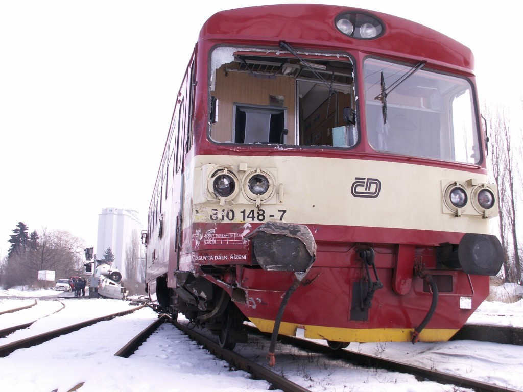 Slaný - Neuplynulo ještě ani 24 hodin a na českých přejezdech došlo k další nehodě - dnes v 9:53 došlo na železničním přejezdu poblíž zastávky Slaný předměstí ke střetu motorového vozu 810.148-7 a nákladního automobilu Tatra 815. Vlak pod číslem MOs 6706 směřoval z Kralup do Rakovníka. Ke střetu došlo na velmi frekventovaném přejezdu (silnice spojuje Prahu se Slaným a městy na severozápadě Čech). Silniční doprava byla vedena objízdnou trasou, vlaky nahradila náhradní autobusová doprava. K obnovení provozu došlo v 11:30. Jasným viníkem nehody je řidič nákladního automobilu, který nerespektoval výstražnou signalizaci a přehlédl zavřené závory - vjížděl totiž z cesty, vedoucí souběžně z železnicí, která se do hlavní silnice napojuje kolmo přímo na přejezdu). Při nehodě nedošlo k vážnějším újmám na zdraví. Jen řidič automobilu měl zlomených několik žeber, dolní končetinu a četné oděrky.
