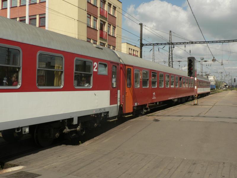 Zatímco čekáme na odjezd, na vedlejší koleji zastavuje rychlík 608 Spišan z Košic do Bratislavy. Rozhodně se nejedná o typického reprezentanta rodiny rychlíků ZSSK, navíc když jejich řazení má tendenci kolísat jako hodnota akcií Nortelu, jenže budeme-li porovnávat konkrétní den a konkrétní vlak, rychlík komfortem vede na celé čáře. I v čele Fatry se nachází vůz ZSSK – zapůjčený B 20-41 bez označení RIC; zatím to nejslabší, co v uplynulých dnech jako posila v červeno-bílo-šedé vyjelo. Mezi nouzovými náhradami lze potkat i vozy Bmeer, jež i přes svou neoblíbenost u slovenské šotoveřejnosti nabízí šest sedadel na oddíl a elektrické zásuvky (pomineme-li v tomto období irelevantní, a v létě poměrně slabou, klimatizaci). Ne snad, že by ZSSK nabízela luxusní cestování na všech svých rychlících – jak již bylo řečeno, odchylky jsou často propastné. Zrovna zapomenutý EC Košičan a jeho sourozenec s dvojitou identitou František Křižík/Hradčany ale v současnosti jsou mezi Prahou a Slovenskem jediné, které se původní definici EC alespoň přibližují.
