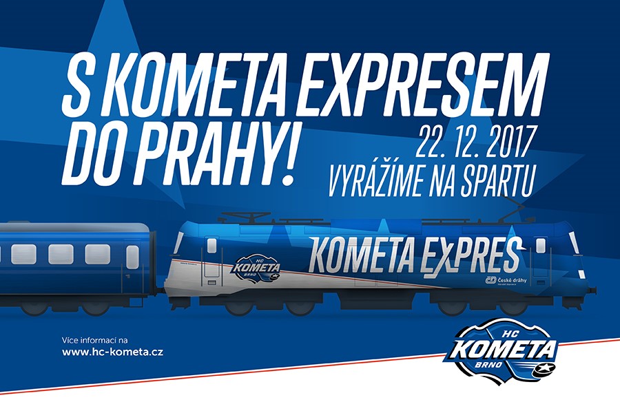 Dva dny před Vánocemi, v pátek 22. prosince, vyrazí z Brna speciální modrobílý vlak KOMETA EXPRES, který doveze hokejisty Komety, fanoušky i stovky děti z jižní Moravy do hlavního města. Tam Brňané v multifunkční O2 areně vyzvou v utkání 32. kola Tipsport extraligy pražskou Spartu. Po utkání vlak zamíří zpátky do Brna.