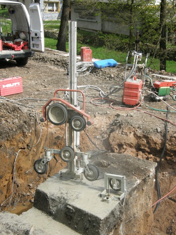 V neděli 4. května došlo k obnažení překážející části prahu. Na jedné z fotografií je dobře vidět původní žlábek. V následujících dvou dnech pak bylo přistoupeno k provedení řezů diamantovým lanem. Řezy profilu 110 x 100 cm byly provedeny dva, přičemž každý trval okolo tří hodin. Společně s přípravou zařízení se během dne stihl pouze jeden. 7. května byly obě části jeřábem naloženy na nákladní automobil a odvezeny do expozic obou zmíněných muzeí.
