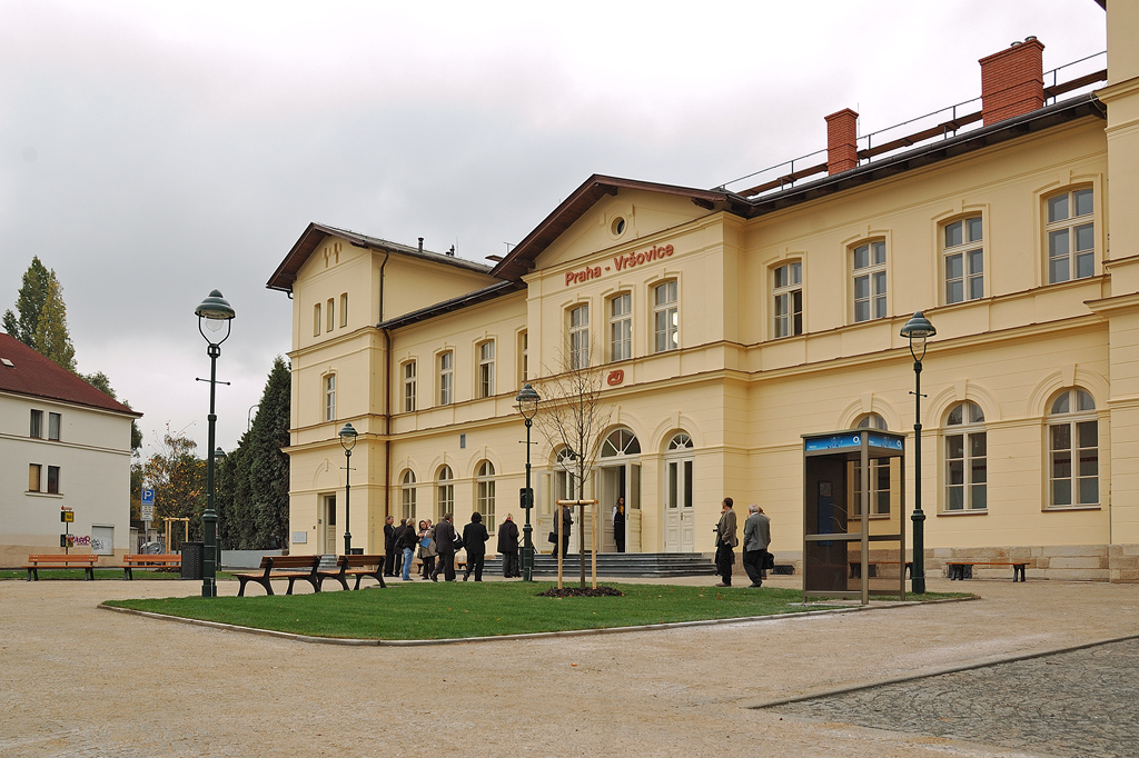 Součástí prací byla i úprava přednádražního prostoru, v němž byl vybudován malý park a posezení. Zrenovovány byly odbavovací prostory a sociální zařízení. Nové provozní a kancelářské prostory naopak přivítají zaměstnanci žst. Praha-Vršovice a Regionální správy majetku ČD Praha, které zde bude mít své sídlo. Na snímcích si můžete prohlédnout opravenou budovu i samotné slavnostní otevření.