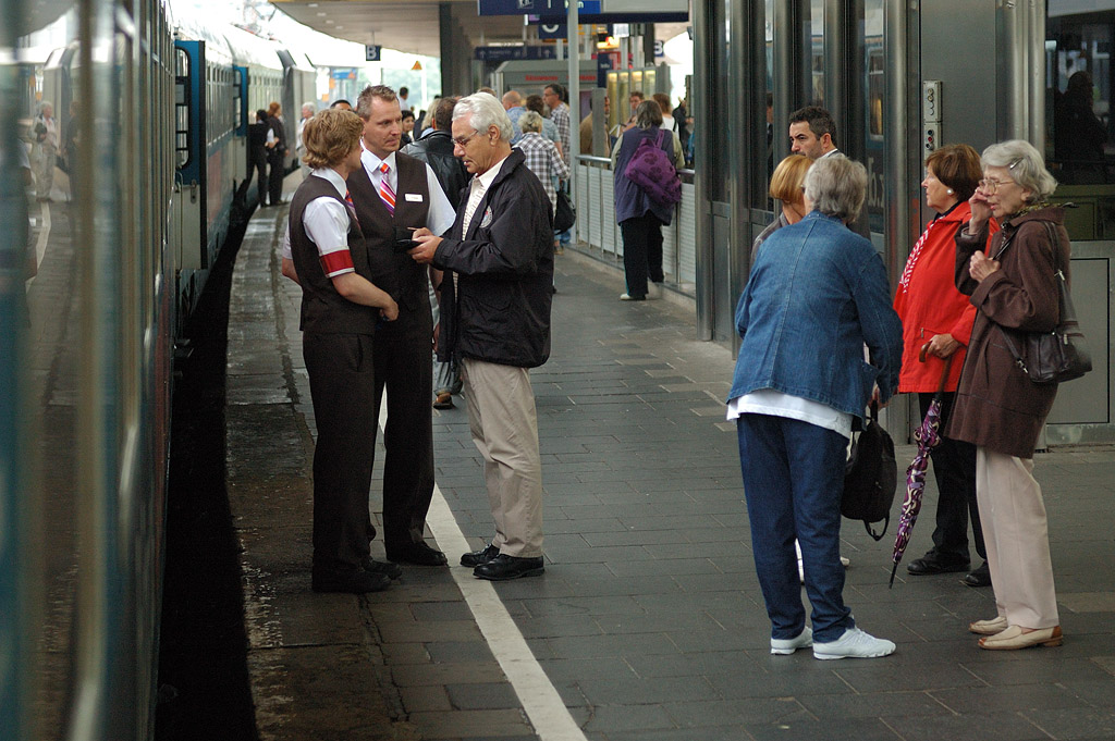 HKX1803 a stevardky - najděte hip hop šotouše, foto: Josef Petrák Hamburk/Kolín nad Rýnem — Německé firmy Hamburg-Köln-Express a Veolia-Transdev se v březnu tohoto roku dohodly na spolupráci v přípravě komerčních dálkových vlaků mezi Hamburkem a Kolínem nad Rýnem. HKX chce konkurovat IC a ICE dopravce DB Bahn třemi páry vlaků, které provozně zabezpečí Veolia, zatímco HKX zajistí posádky a prodej jízdenek. Jedná se o investiční projekt německé společnosti Locomore, americké investiční společnosti Railroad Development Corporation specializující se na drážní projekty a britského investičního poradce Michaela Schabase. Historie sahá do roku 2009. Minulé pondělí, 23. července, HKX zahájil provoz se zcela jinými soupravami, než které plánoval nasadit. DB si své služby považuje výše a upozorňuje, že čelí mnohem více konkurentům, než jen třem vlakům do Hamburku.
