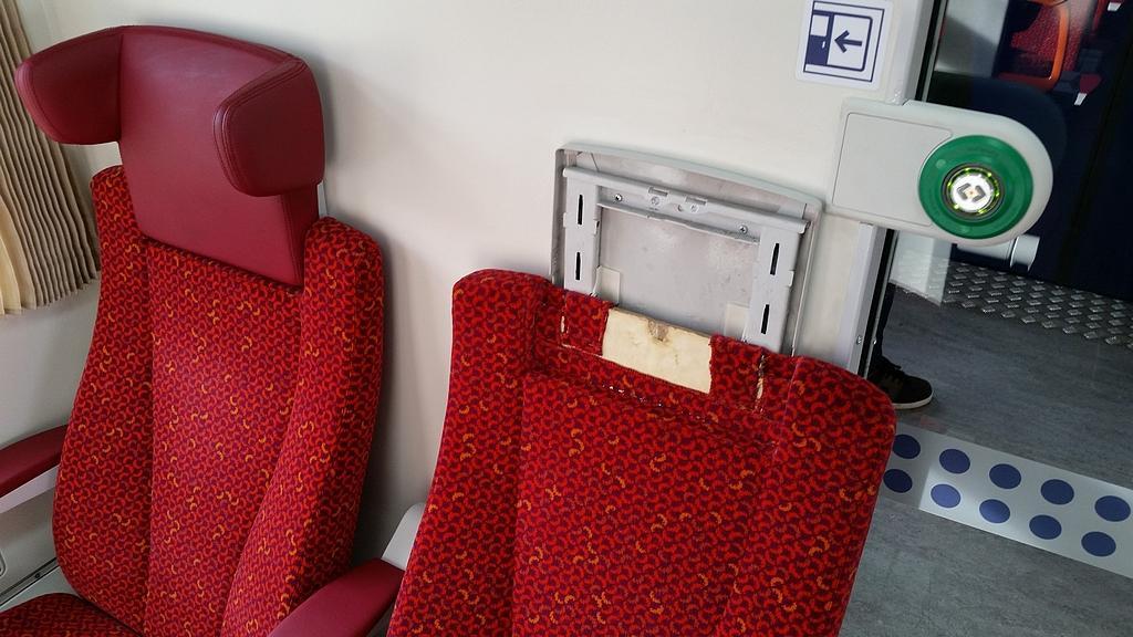 Takže, co s tím? V první řadě je na vině objednavatel takového vozu, tedy České dráhy, jelikož co si objednají a přeberou, to také dostanou a provozují. Přebrat vůz, kde není schopen Nejen, že koukáte do stěny, ale umístění stolku také není zrovna praktické…, foto: Aleš Petrovskývýrobce dodržet alespoň stejné rozteče u sedadel, je skandál. Koberce se dle vyjádření Českých drah do vozů neinstalují z hygienických důvodů, ale u vozů nasazovaných na linku Praha – Hamburk budou i ve druhé třídě, stejně jako jsou instalovány ve třídě první například v jednotkách railjet. Takže zde jde jen o těžko pochopitelnou výmluvu. Dále je v první třídě zarážející absence látkových podhlavníků, které dodávají interiéru alespoň o něco málo honosnější vzezření. Dráhy slíbily, že to projednají s příslušným depem. Ono takové lepení suchých zipů a doplnění podhlavníků je totiž třeba řádně prodiskutovat. Vždyť samotná instalace tohoto řešení je práce zhruba na patnáct minut. Sjednocení akustického signálu pro nevidomé s ostatními vozy by mělo být samozřejmostí, aby cestující nemuseli poslouchat symfonii tří různých zvuků (u vozů ABpee, Bbdgmee, Bdtee) několikrát za cestu.