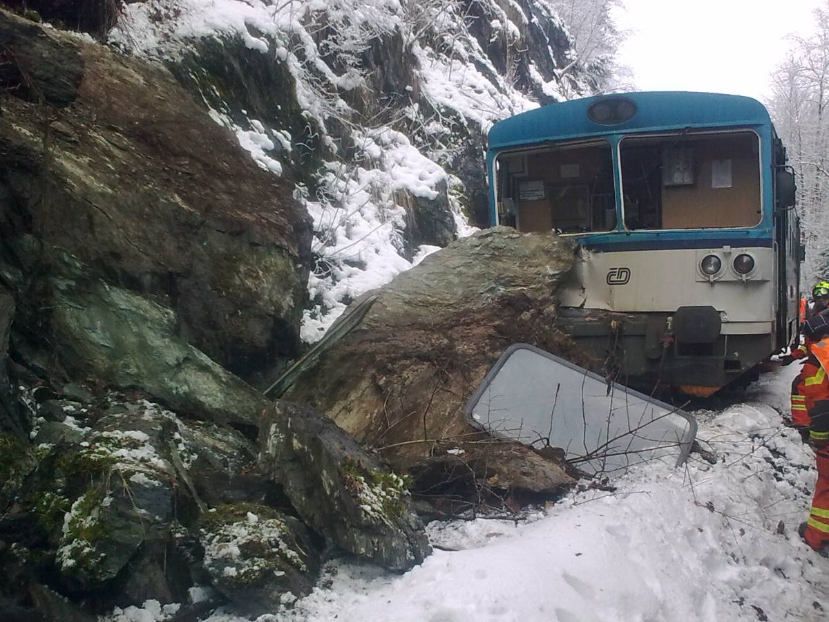 Poniklá — Středa 28. ledna 2015 nezačala pro některé zrovna příjemně. V ranních hodinách narazil na podkrkonošské trati 042 vlak do sesutého kamení. K nehodě podle informací Drážní inspekce došlo v 6.34 v úseku mezi dopravnami Poniklá a Hrabačov, konkrétně mezi Poniklou a zastávkou Horní Sytová. Jelikož se místo nehody nachází v oblouku a v zářezu, strojvedoucí spatřil překážku až na poslední chvíli a vlak tak již nestihl i přes okamžité použití rychlobrzdy zastavit ani opustit své stanoviště. Zraněno bylo celkem 7 cestujících, dále také vlakvedoucí a strojvedoucí osobního vlaku. Zranění strojvůdce byla klasifikována jako středně těžká a k jeho transportu byl nasazen vrtulník, zatímco ostatní byli po ošetření na místě či v nemocnici vesměs již propuštěni domů. Dotčeným vlakem byl spoj Os 15501, který jel z Jablonce nad Jizerou do Martinic v Krkonoších. Vlak je pravidelně veden motorovým vozem řady 810, dnes byl nasazen konkrétně vůz 810 563-7. Podle vyšetřovatelů je trať nyní zavalena skálou v rozsahu asi 3 metry na výšku, 4 metry na šířku a v délce až 30 metrů. Škoda byla prozatím vyčíslena na 1,5 mil. Kč, provoz by měl být podle informací SŽDC obnoven přibližně za týden.