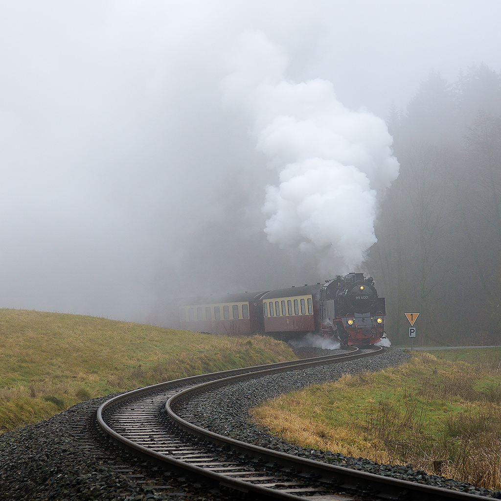 99 6001, Sternhaus Ramberg - Mägdesprung, foto: Tomáš Kubovec Zdárný příklad toho, jak lze kouzlit i ve zhoršených světelných podmínkách, je fotka úzkokolejky od Tomáše Kubovce z německého Hartzu. I když se trošku vymyká Tomášovým zahraničním „klasikám“, je to další nádherná fotografie, kterou si člověk zapamatuje. Zajímavý je i fakt, že na fotce je v podstatě vidět jen vlak vynořující se z husté mlhy, díky které je celé pozadí zahaleno, což by za jiných okolností mohlo být nudné, ovšem tomuto se zabránilo focením přes kolej a do kompozice krásně přistály dva obloučky z úzkých kolejí.