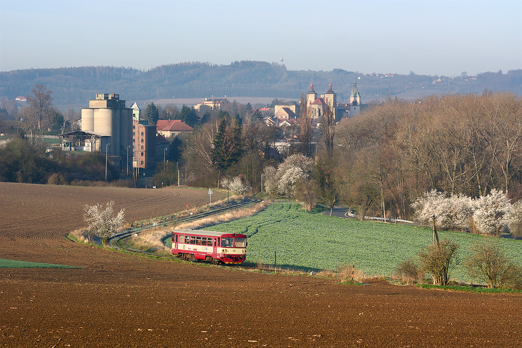 Další fotografií, na kterou jsem během uplynulých 14 dnů se zaujetím klikal opakovaně, je Charyho lokálková klasika se stále vzácnějším červeným motorákem. Autor v tomto případě výborně využil potenciál dlouhého skla, pro svůj záměr vybral vhodné místo a počkal si na správné podmínky pro tento typ záběru. Na mysl se mi vkrádá známé rčení „kdo umí, ten umí“. Přidanou hodnotou, která odlišuje skutečnou fotku od „šotky“, je pro mě v tomto případě opět charakteristický místopis; ve druhém plánu budovy sila a skladiště, ve třetím plánu pak dominanty kuřimského náměstí – kostel sv. Štěpána a věž zvonice.