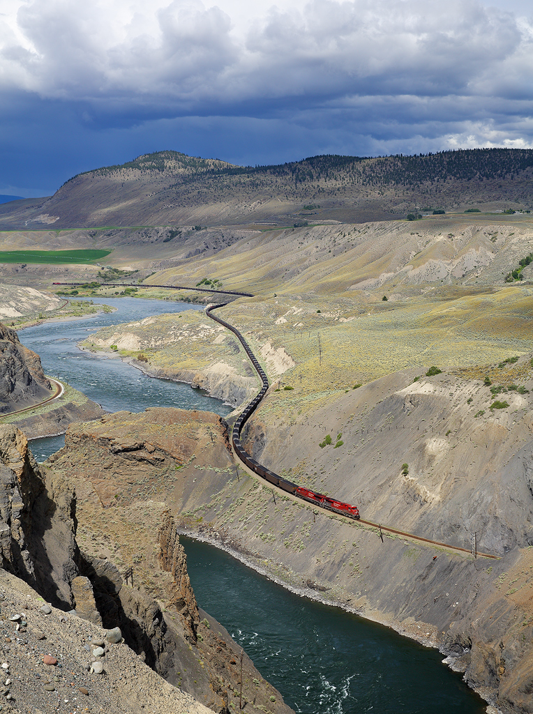 Jako první bych vybral tento monumentální pohled. Parádní nadhled jako z vrtulníku, ze kterého máme tamější krajinu jako na dlani. Dálavy ohraničených oblačností dávající na vědomí, že bude mokro. Mohutná meandrující řeka připomínající velikostí Labe na Mělnicku, jako by diktovala vlaku kudy a kam má jet. Stavebně i dostupností náročný terén dal za vznik takto pozoruhodným pohledům. Tento záběr plný superlativů bych si nechal vytapetovat v ložnici. Zkusím to navrhnout ženě. Když nebudu dlouho přítomen v galerii, můžete tušit, jak to dopadlo. Dále mě zaujala délka vlaku, kterou autor zachytil celou díky správné volbě místa. Edit nemá cenu ani řešit. Je prostě zvládnutý na jedničku. Ostřílený profík. O vánočním večírku jsem se rozplýval nad kalendářem T. Kubovce, který byl plný překrásných záběrů z této výpravy. Povedená akce.
