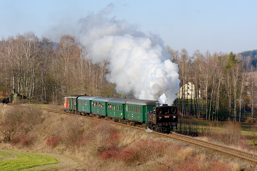 310.0134, Myslechovice - Cholina, foto: Mates z Letovle Turnov — Žádat zdejší čtenáře o příspěvek na opravu parního kotle nebývá zrovna obvyklé. Spíše jste zvyklí na aktuality ze současného dění, pozvánky na akce, případně na ohlédnutí za akcemi, kde byly parní lokomotivy v roli těch hlavních účastníků, vzpomínky na minulost či připomenutí, jak vlastně pracuje parní stroj. Jsme ale tým, pro které je lokomotiva 310.0134 naší „láskou“ a jsme schopni udělat pro ni téměř cokoliv. Protože na opravy kotlů parních lokomotiv není vypsána žádná dotace (na rozdíl od zřízení wellness hotelů, výstavby golfových hřišť…) a sami potřebnou částkou nedisponujeme, chceme poprosit vás, zda byste nám pomohli. Ale úvodem se sluší představit naši krasavici (má i svůj web).