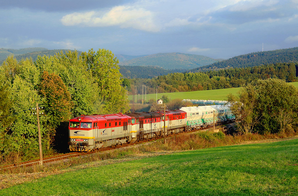 751.192-6 + 751.033-2 + 751.047-2, Sklené pri Handlovej - Remäta, foto: Tomáš Krajcar Podvečerní snímek trojice bardotek kde si ve středu Slovenska nedaleko od Horné Štubně a NP Velká Fatra, snad nepotřebuje velký komentář. Na Slovensku je prostě krásně, i když jsem Slovensko navštívil mnohokrát, tak jen jedinkrát s cílem focení vlaků. A právě takovéto snímky, jako je trojice zamračených, mě neustále přemlouvají, že bych to měl v budoucnu napravit.